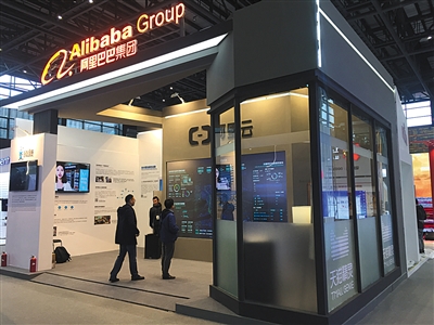 阿里巴巴展台,大屏幕中展示的是阿里云推出的ET大脑。