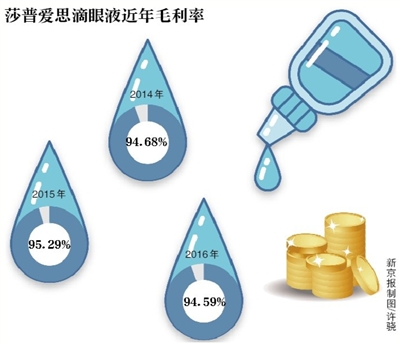 2016年,莎普爱思主营业务毛利率为76.47%,较上一年增加了2.83个百分点。其中,滴眼液的毛利率为94.59%。