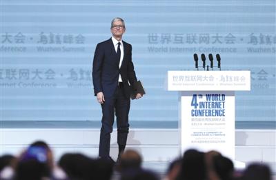 12月3日,美国苹果公司首席执行官蒂姆·库克在第四届世界互联网大会开幕式上准备发表演讲。新京报记者 李冬 摄