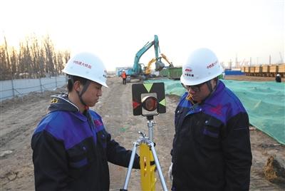 昨日,新机场北线高速公路北京段开工,工程人员正在进行勘测。新京报记者 王贵彬 摄
