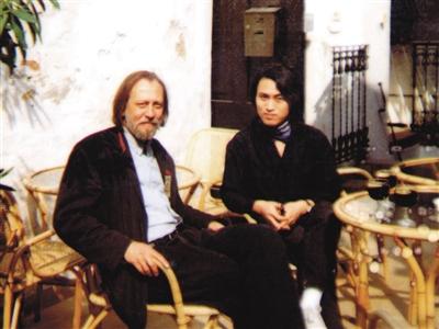 克拉斯诺霍尔卡伊与译者余泽民在咖啡馆,他们已经相识多年。