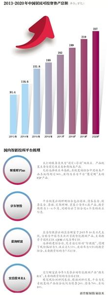 另一方面,中国的现实是金融资产与可投资总额规模巨大,这也为互金智能投顾行业提供了机遇。以基金为例,央行的统计数据显示,2016年中国证券投资基金规模达到91590亿,基金数量仅为3867只,而2017年证券投资基金规模及数量分别突破11万亿及5000只基金。来自智能金融行业观察提供的数据,2017年中国居民可投资总额相比2016年大概增长11%,可达到183万亿人民币,增长量为18万亿人民币,到2020年居民可投资总额预计可达237万亿人民币。