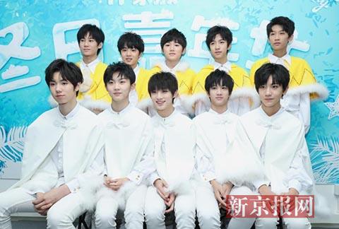 图片说明:TF家族练习生的十位成员亮相新年音乐会媒体见面会,坦言会以师兄TFboys为榜样。新京报记者 郭延冰摄