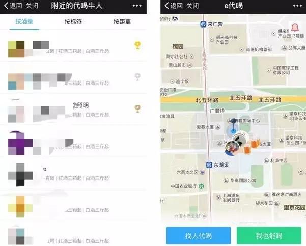 ▲“e代喝”附近代喝牛人。图片来自e代驾手机截图