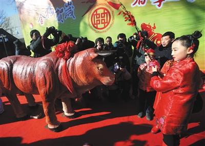 昨日,东城区建国门街道举行“金狗贺岁、春牛送福”立春文化活动。作为活动的重头戏,“风车迎春鞭打春牛”民俗活动在古观象台进行,“小牛童”把牛肚里象征丰收、美满的春粮、福袋掏出分发给参加活动的居民。新京报记者 王贵彬 郭超 摄影报道