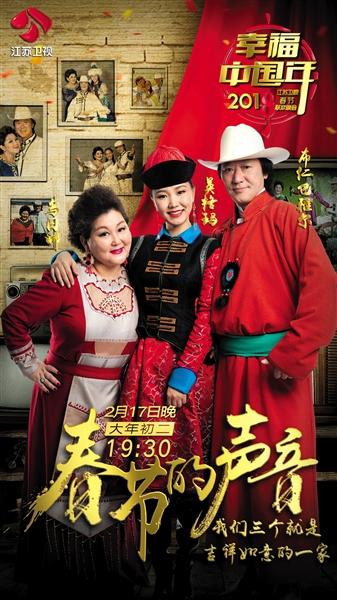 大张伟、薛之谦将在江苏卫视春晚再度“合体”。此外,迪玛希、泰国偶像Mike、汪苏泷、何洁、胡彦斌等人气歌手献唱。十二年前春晚的舞台上,布仁巴雅尔一家人的《吉祥三宝》一夜之间传唱大江南北。十二年后,他们再次登上江苏春晚演绎《吉祥三宝》。