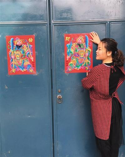 腊月二十八,妹妹在老家宅院贴春联、门神。虽然二三十个相亲对象都结婚了,但妹妹依然觉得婚姻不能草率。受访者供图