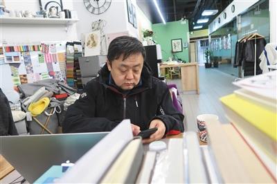 57岁的创业者张忠义在办公室中用手机处理公务。新京报记者 曹忆蕾 摄