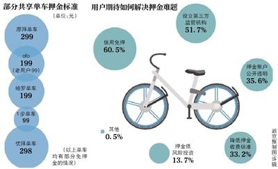 共享单车押金问题一直备受关注。今年两会期间,交通运输部党组书记杨传堂就“押金监管”表示,“交通运输部组织做了充分的市场调研,与其他部门已经制定了初步的押金和服务金的监管办法,会尽快发布实施。”