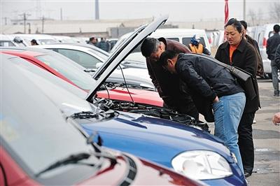 消费者在二手车市场内选购二手车。近年来大量二手车交易移至电商平台,更多诚信问题随之出现。图/视觉中国