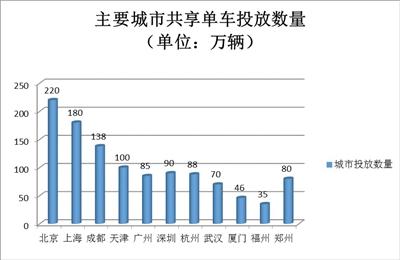 交通运输部统计数据显示,截至2017年底,全国累计投放共享单车达2500万辆,大部分集中在一二线城市。其中北京、上海、成都、天津等城市均超过100万辆,深圳、广州、杭州、郑州、南京等城市的共享单车也均达到80万辆以上。