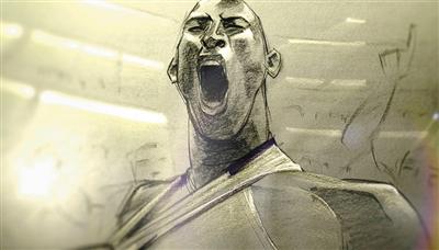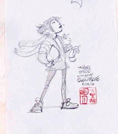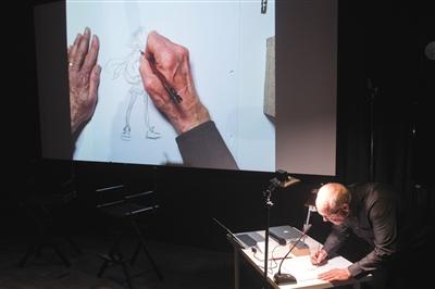 格兰·基恩现场手绘《奔月》中FEI FEI的人物概念图。