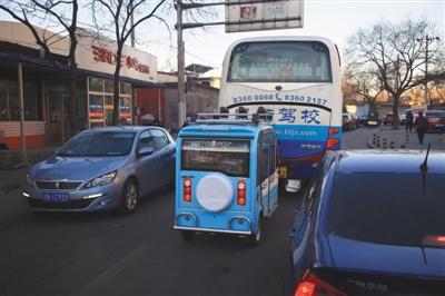 2017年2月23日,丰台东路,一辆“老年代步车”挤在道路中间,按照新规定,这类车将按机动车管理。 资料图片/视觉中国