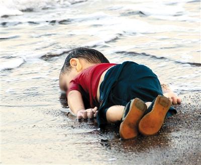 2015年9月2日,土耳其博德鲁姆,前往希腊科斯岛的移民船沉没,3岁叙利亚难民艾兰·库尔迪的遗体被冲上海岸。图/视觉中国