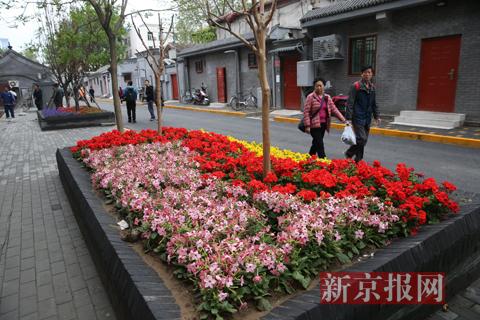 西总布胡同路旁修建的花坛。新京报记者 王贵彬 摄