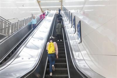 昨日下午,新京报记者在地铁磁器口站看到,大多数市民在乘坐自动扶梯时,依然保留着“左行右立”的习惯。自动扶梯的左半部分被空出,不时有一些赶时间的市民通过,急速向上步行。