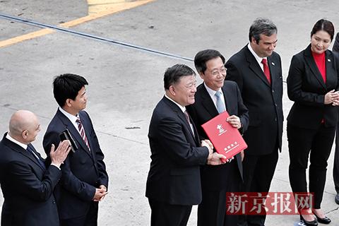 启运仪式上,陈竺向设备捐赠方及运输方颁发证书。