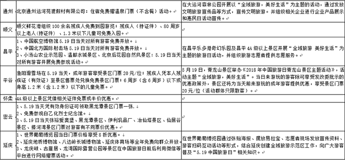 附:北京5·19中国旅游日惠民政策、活动汇总表