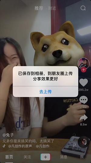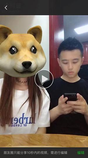 再看抖音,点击上传到朋友圈之后,APP提示“已保存到相册,到朋友圈上传分享效果更好”,点击“去上传”,收到提示“朋友圈只能分享10秒内的视频,需进行编辑”。