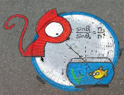 为迎接90周年所庆,中科院物理所精选物理学中核心的24个公式进行了一次井盖涂鸦活动。图/视觉中国