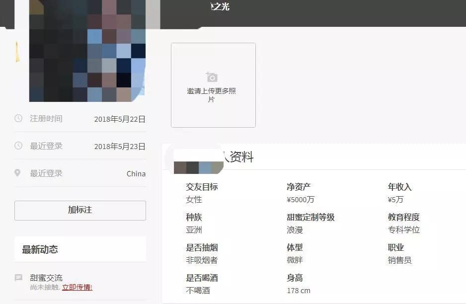 不同的是,在甜蜜定制中,以成功人士身份注册时有填写净资产和年收入的选项。对此,甜蜜定制公关部告诉寻找中国创客(ID:xjbmaker),资产、年收入等栏目是可选项,不填也可以。
