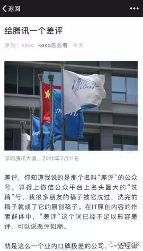 如果没有意外,这应该是腾讯在科技新媒体的首笔投资。然而,恰恰因为差评的所作所为违背腾讯长期以来坚持的正直价值观,导致恶评如潮。自媒体人“三表”更是发布了一篇名为《腾讯大如藏獒,说到底还是狗》的文章,指出腾讯对差评的投资,会助长不良之风。