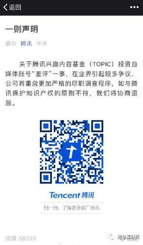 有媒体对腾讯投资“差评”提出质疑