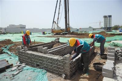昨日,广渠路快速公交系统工程正式开工建设,工人在现场施工作业。新京报记者 王贵彬 摄