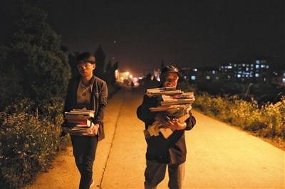 5月31日,晚上放学后,一名爷爷辈的陪读家长帮孙子搬教辅材料回出租房。