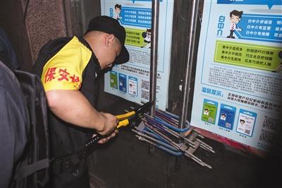 6月6日上午,涉案楼盘外,申请执行人雇用保安剪开十余把门锁。实习生 陈婉婷 摄