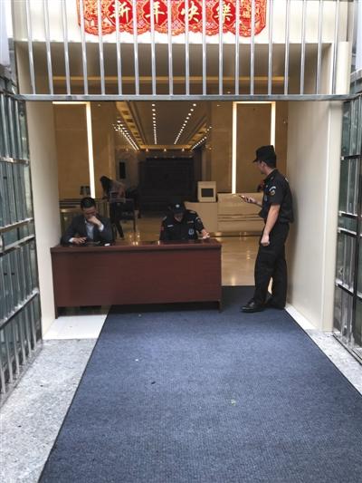 6月8日早上,新京报记者来到大生农业金融所在地嘉汇国际广场G座,和嘉汇国际广场的其他写字楼不同,这栋楼大门口被三名成年男子把守,其中两位身着“特勤”制服,其中一位称“是华信最近请我们来”。记者注意到,该楼的安检口上打着华信CEFC标志。