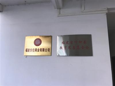 福建华信旁边挂有叶柳春(叶简明爷爷)基金会牌子。新京报记者 赵毅波 摄