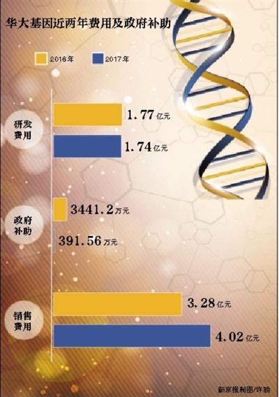 2017年年报显示,华大基因曾以不同名义获得过不少政府补贴,发放补贴的主体包括天津港保税局财政局、南京新城科技园管委会、深圳市盐田区财政局、武汉市财政局、广州市财政局、重庆市科委等。2017年,华大基因共获得政府补助391.57万元。2016年的数据更为可观,华大基因获得政府补助3441.25万元。