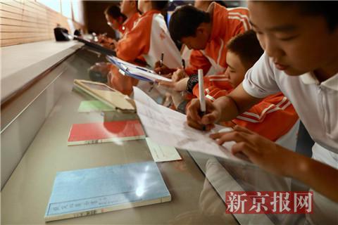 首师大附中学生在四库全书库房抄写原版内容。新京报记者 浦峰 摄