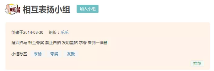 ▲豆瓣上的相互表扬小组。 图片来源:豆瓣截图。