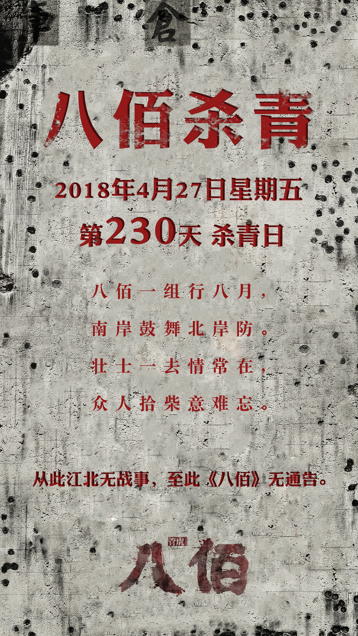 据悉,该片讲述在1937年淞沪会战期间,八百壮士在四行仓库抵抗三十万日军进攻并奋战四天四夜的故事。影片上映日期暂时未定。