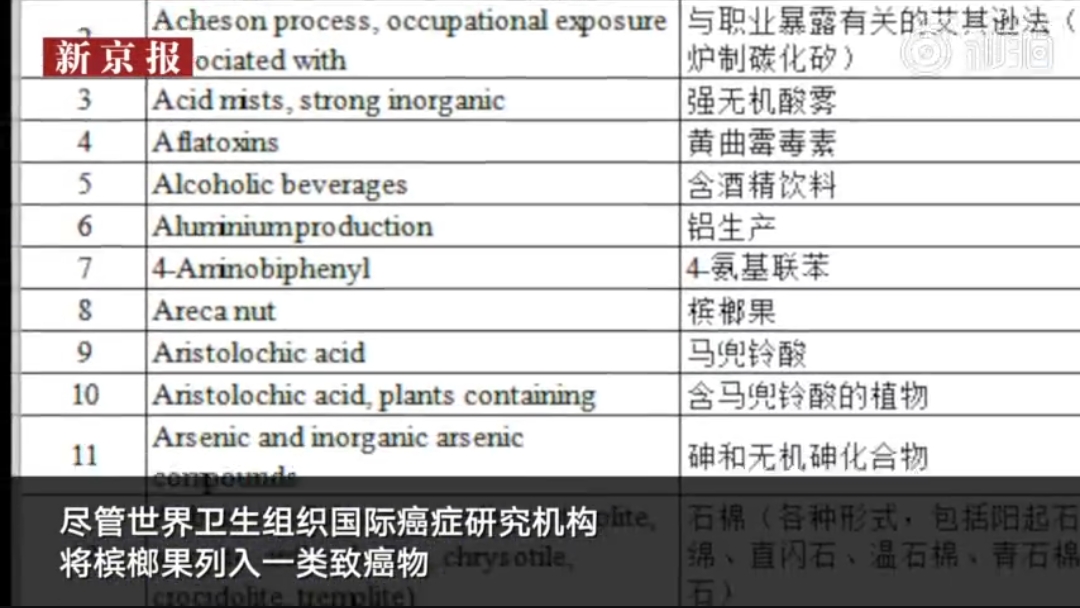世界卫生组织将槟榔列为一级致癌物。 视频截图