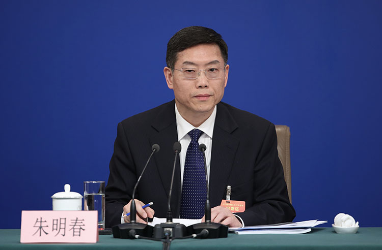 全国人大常委会预算工作委员会副主任朱明春出席记者会。
