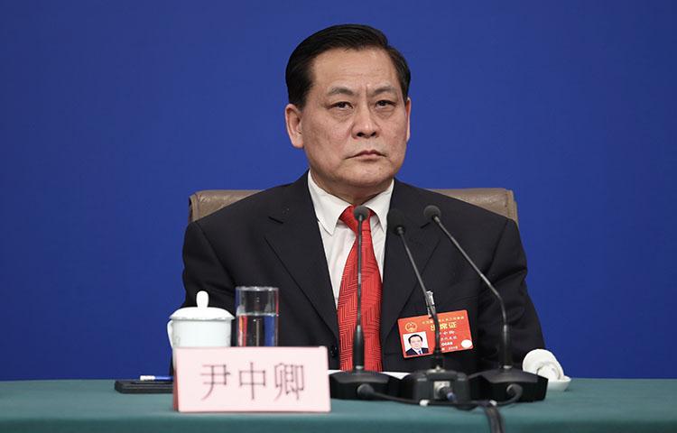 全国人大财政经济委员会副主任委员尹中卿出席记者会。