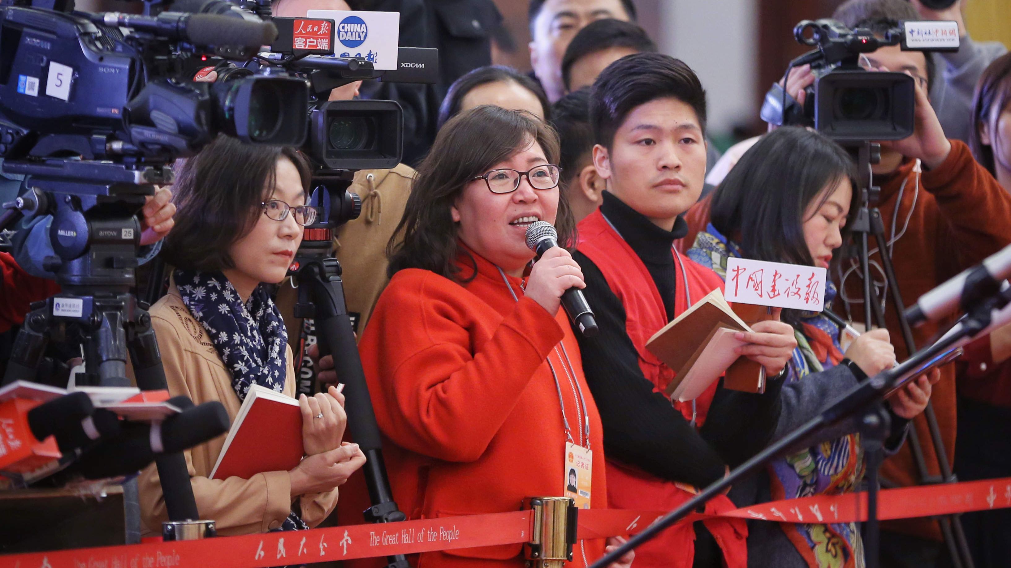 新京报首席记者王姝向人社部部长张纪南提问。新京报记者 薛珺/摄