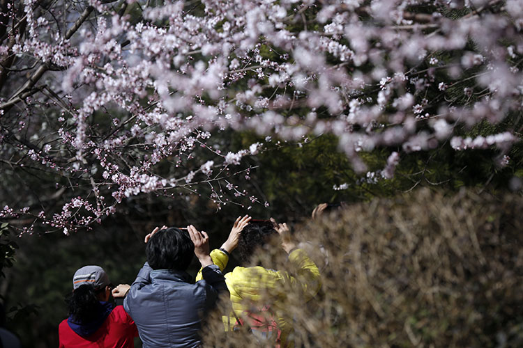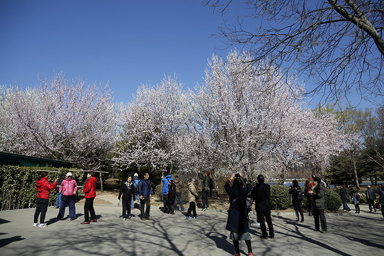 新京报讯 3月12日,记者从玉渊潭公园了解到,公园正采取技术促培方式让樱花提前绽放,自本周起,福建山樱、椿寒樱等8个品种的促培樱花将在园区内陆续与游客见面。园内自然生长的樱花预计于下周开放,花期比去年提前了约一周。