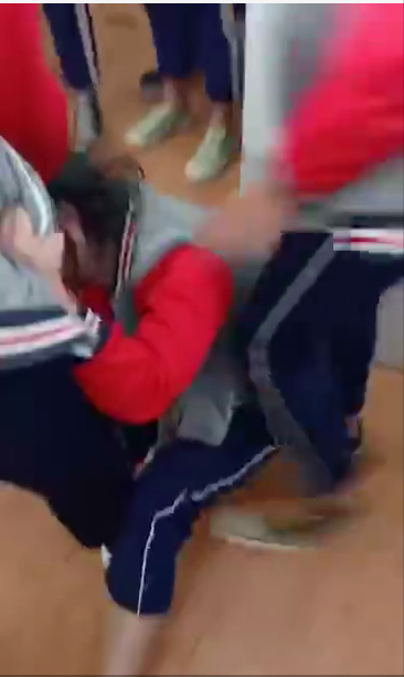 事发视频中,教室里,两名男生踢踹一名女生并把女生推到在地,随后用脚踢女生的头部。有多名围观同学,有女生发出尖叫声,说“别打了”。整个殴打过程约32秒。