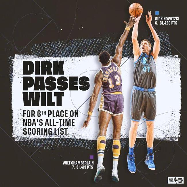 诺维茨基生涯总得分超越张伯伦。图/社交媒体
