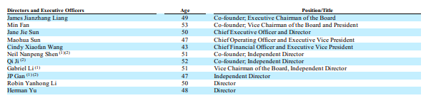 携程最新管理层(图源:携程2018年年报截图)