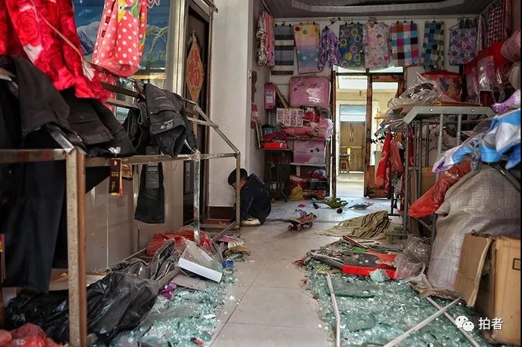 王商村的一家商铺中,满地都是碎玻璃。新京报记者彭子洋 摄