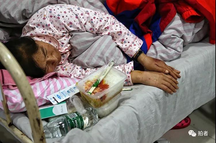 一家医院的电梯里,家属提着水果和饭菜挤来挤去,年轻的义工穿着红色马甲,病人们被搀扶着、推着送去检查。得知病人们是在同一场灾难中受的伤,大家三言两语问候着对方。