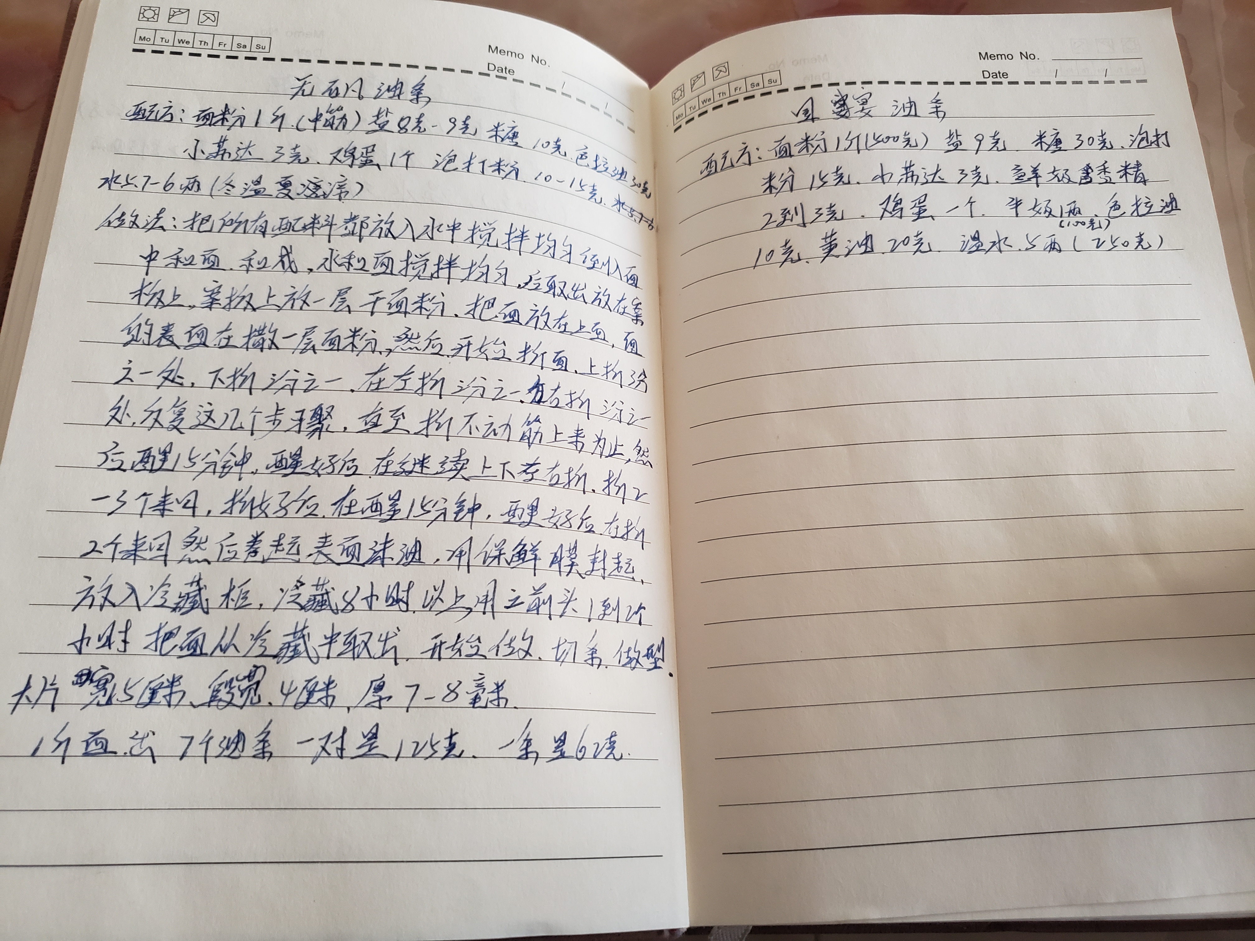 孙迟留下的一个黑封皮日记本上,写着许多菜肴的做法,锅塌豆腐,花卷,无矾油条,配方和烧制过程都详细记录了下来。在日记的首页,他写到:“从今天起:工作要做好,身体要健康,股票要炒好。”落款是2016年9月25日。