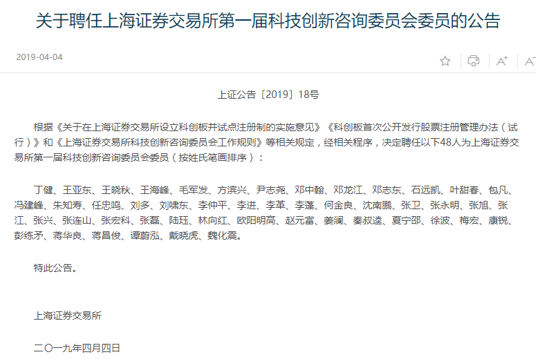 第一届咨询委由48名委员组成,委员来自高新技术产业企业、投资机构、科研院所等,委员来源分布广泛,有充分的代表性,为科创相关领域的专家。委员均为兼职,以个人专家身份履行职责。咨询委委员将按照规范程序承担咨询委工作,为科创板建设、科技创新相关技术或产业化应用的先进性或领先性提供咨询意见,为审核工作提供专家支持。