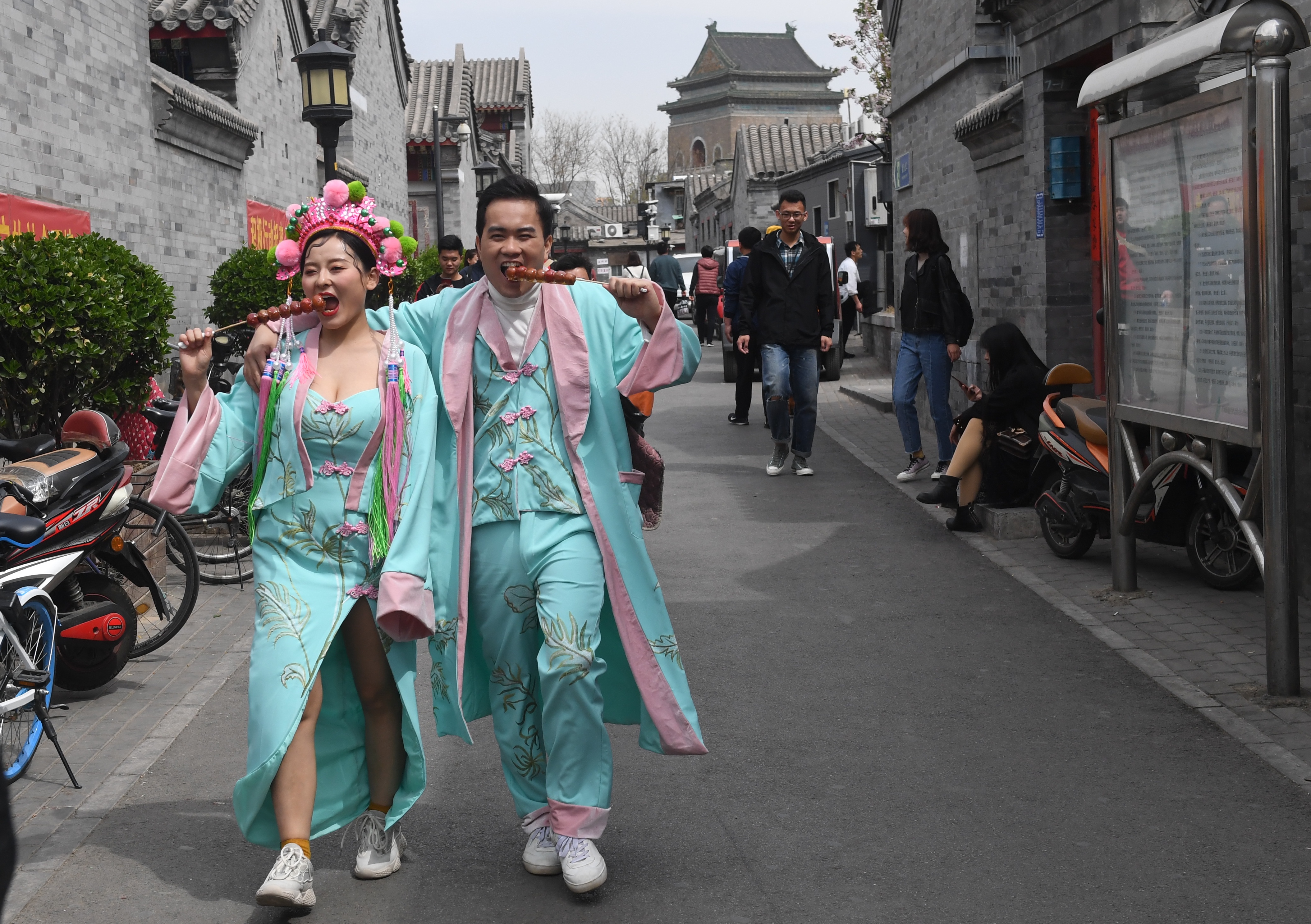 新京报讯 4月6日,清明小长假,什刹海景区游客熙熙攘攘,游客利用小长假旅游,来到北京风味浓郁的什刹海景区,拍照留念、品尝老字号小吃、了解老北京风俗民情……