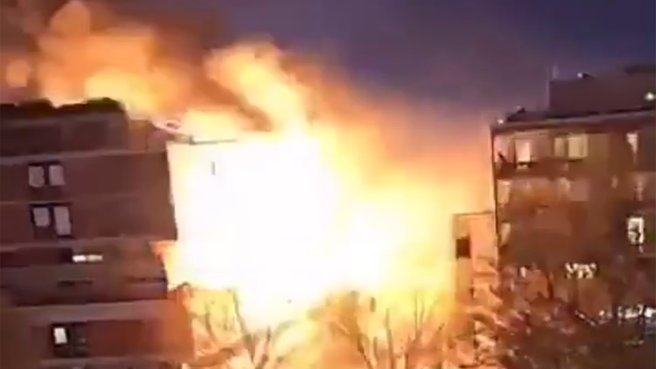 一名目击者在社交媒体Snapchat上分享了火灾现场视频,在火势蔓延过程中,突然发生剧烈爆炸。当地消防部门发言人表示,目前暂时不能判断火灾原因,不过爆炸可能是因为居民楼内的煤气罐。